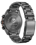 Introduced in 1987, Citizen's Eco-Drive-powered Radio-Controlled watch collection combines luxury, precision, and reliable performance in every chronograph. Part of the Black Titanium Series™, this timepiece features a durable, scratch-resistant Duratect DLC Super Titanium™ case and matching bracelet. Silver and orange-tone accents provide a bold contrast against the striking black three-register chronograph dial, enhancing its sophisticated appearance. Beyond polished design, the watch offers a range of practical features, including 26-city World Time, a power reserve display, a perpetual calendar, scheduled radio signal reception, overcharge prevention, a sapphire crystal, and water resistance up to 100 meters. (Please note that the radio-controlled functionality will not work in Australia due to the absence of radio transmitting stations within range. These stations are exclusive to four regions: Europe, USA, China and Japan. However, this does not affect manual time adjustment. Please refer to your instruction manual for guidance.)