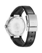 Inspired by Attesa’s enduring passion for space exploration, this sophisticated timepiece combines advanced Eco-Drive technology with a refined moonphase indicator, delivering both innovation and timeless appeal. Its sleek, minimalist design is elevated by a supple leather strap, a rich dark gradient dial, and a triple calendar layout. Silver-tone accents lend a polished finish, while 100-meter water resistance ensures lasting performance in any setting. This watch redefines modern luxury, seamlessly blending elegance, functionality, and durability.