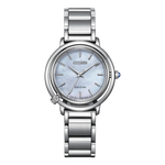Classic lines and hints of romance make this newest piece to our ladies' collection; the Citizen L "Aising" is a glamorous addition. Inspired by the sunrise, this watch features a sleek design that combines the gentle, curving lines of the stainless-steel case with lustrous mother-of-pearl dial to showcase the delicate beauty of the sunrise itself. Continuing to provide sustainable watches, the Citizen L collection uses the elegant designs to reflect the beauty of the planet while evoking the feelings of joy and happiness every time you look at your wrist. Special features also include a 3 set diamond at the 7 o'clock position, representing the appearance of the first flash of dawn and extra strap.