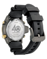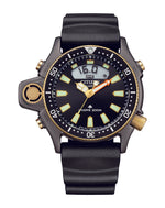 Celebrate 40 years beneath the surface. The limited-edition Promaster Aqualand Quartz redefines a classic with a bold, hybrid construction built for modern divers. Commemorating four decades of the Aqualand legacy, this ISO-compliant timepiece is packed with pro-level features—maximum depth memory, rapid ascent alarm, and auto start dive mode—making it the perfect companion for any underwater adventure. A robust 43.5mm grey-tone stainless steel case with a screw-down crown is paired with a durable black polyurethane strap, while gold-tone accents add a touch of retro flair. The black dial features luminous hands and markers, alongside an ana-digi display at 12 o’clock for enhanced readability. Water resistant to 200 metres and powered by the precise Calibre C520 quartz movement, this collector’s piece is ready to dive into the next chapter.