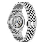 Designed for those who appreciate clean lines and functional style, this refined 40mm timepiece features a silver-tone stainless steel case with a seamlessly integrated bracelet—crafted for comfort and easily interchangeable for a personalised touch. A recessed crown at 4 o’clock enhances the watch’s sleek, uninterrupted silhouette.