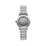 The Raymond Weil Millesime Small Seconds Diamonds Watch 35mm combines modern sophistication with timeless charm. It showcases a cream sector dial with silver-toned hands enhanced by Super-LumiNova®. The satin-brushed bezel contrasts beautifully with the polished stainless steel case and matching bracelet, adding a refined touch. The lugs are adorned with 16 laboratory-grown diamonds (0.26 cts), providing a discreet sparkle that blends quintessential femininity with modern sensuality. Through the exhibition case back, the automatic RW4200 movement is visible, providing a 41-hour power reserve.