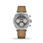 The Raymond Weil Millesime Tri-Compax Chronograph blends timeless design with modern elegance. Housed in a sapphire crystal glass-box, the bezel contributes to the refined and luxurious feel of the timepiece. The 39mm stainless steel case combines smooth and snailed contrasting finishes and is attached to a camel calf-leather strap. The anthracite sector dial features silver counters in a reverse panda design with rose gold hands and indexes lined with luminescent treatment. At the heart sits the RW5030 mechanical chronograph self-winding movement. Visible through the exhibition case back, this automatic movement has a power reserve of 62-hours, ensuring accuracy and reliability for all of your adventures.