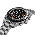 The Tissot PR516 Chronograph Mechanical: a nod to Tissot's distinguished 1970 model. Crafted with a 41mm stainless-steel case and a glassbox-style sapphire crystal, this watch is a testament to sophisticated craftsmanship. At its heart lies a Swiss manual winding movement, visible through the open caseback, showcasing the intricate mechanics. The dial, featuring Super-LumiNova®️-coated indices and hands, ensures readability in any setting. A tachymeter on the bezel adds a touch of functionality. Its versatile design is complemented by a domed stainless-steel bracelet with a quick interchangeable system, perfect for transitioning from business meetings to casual outings. The PR516 Chronograph Mechanical is an exquisite piece for watch connoisseurs who appreciate timeless design and mechanical precision.