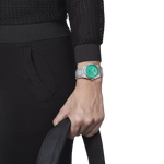Tissot PRX 35mm Powermatic 80, a harmonious blend of nostalgic glamour and contemporary ingenuity. This 35mm watch features a high-quality gold-PVD case and a striking gold coloured dial. The gold variant, bold and purposeful, brings an undeniable dash of audacity to this automatic model. The waffle dial pattern lends further distinction to this timepiece. With water resistance up to 100 meters and a Nivachron™ balance hairspring, the PRX is an exquisite piece for those who appreciate the art of watchmaking. The satin-finish steel bracelet with a triple-blade folding steel clasp guarantees unyielding comfort. Be bold with the Tissot PRX 35mm Powermatic 80 in gold-PVD.