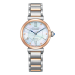 Classic lines and hints of romance make this newest piece to our ladies' collection; the Citizen L May bells is a glamorous addition. Inspired by the Lily of the Valley or May Bells, this watch features a sleek design that combines the gentle, curving lines of the two-tone gold and stainless-steel case with lustrous, white mother-of-pearl dial to showcase the delicate beauty of the flower itself. Finished with a diamond at 8 o’clock, suggesting a single glistening raindrop on the plants bell-shaped flowers. Continuing to provide sustainable watches, the Citizen L collection uses the elegant designs to reflect the beauty of the planet while evoking the feelings of joy and happiness every time you look at your wrist.