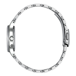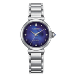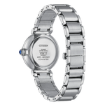 Inspired by the beauty of the oceans that connect us, the CITIZEN L UNITE with BLUE Mae is a stunning expression of sustainability and style. Part of Citizen’s eco-conscious UNITE with BLUE series, this limited-edition timepiece features a shimmering dial made from 100% recycled polycarbonate, representing the colours of the seven seas. Encased in a refined 29.5mm silver-tone stainless steel case, the design is elevated by a crown set with synthetic sapphire and an integrated bracelet for a seamless look. The iridescent ocean-blue dial is accented with delicate diamond markers, evoking the rhythm and depth of the sea. Powered by Citizen’s Eco-Drive technology, it harnesses light from any source and never needs a battery. Water resistant up to 50 metres, this elegant timepiece is both environmentally conscious and effortlessly sophisticated—perfect for everyday elegance or a refined occasion.