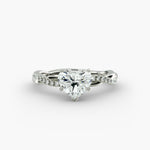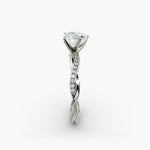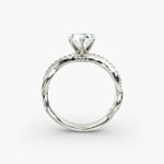 Classic yet unique, this 14k white gold engagement ring showcases a graceful twist of pavé-set diamonds, beautifully enhancing your selected center stone.